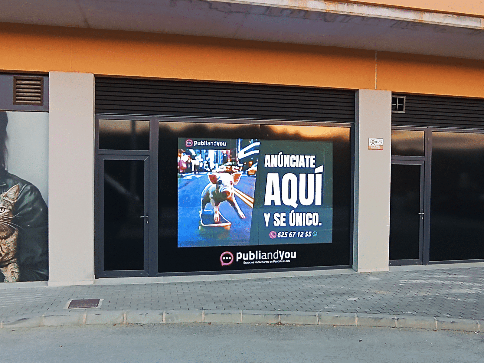 Da visibilidad a tu marca en Benitachell con Publi&You, la red de pantallas LED líder en la Marina Alta. Nuestra pantalla, ubicada en una zona de gran afluencia, es el soporte ideal para promocionar negocios, eventos o servicios locales con un formato digital de alto impacto. Llega a miles de personas cada día con una comunicación moderna, flexible y actualizable, pensada para destacar tu marca en el entorno urbano.